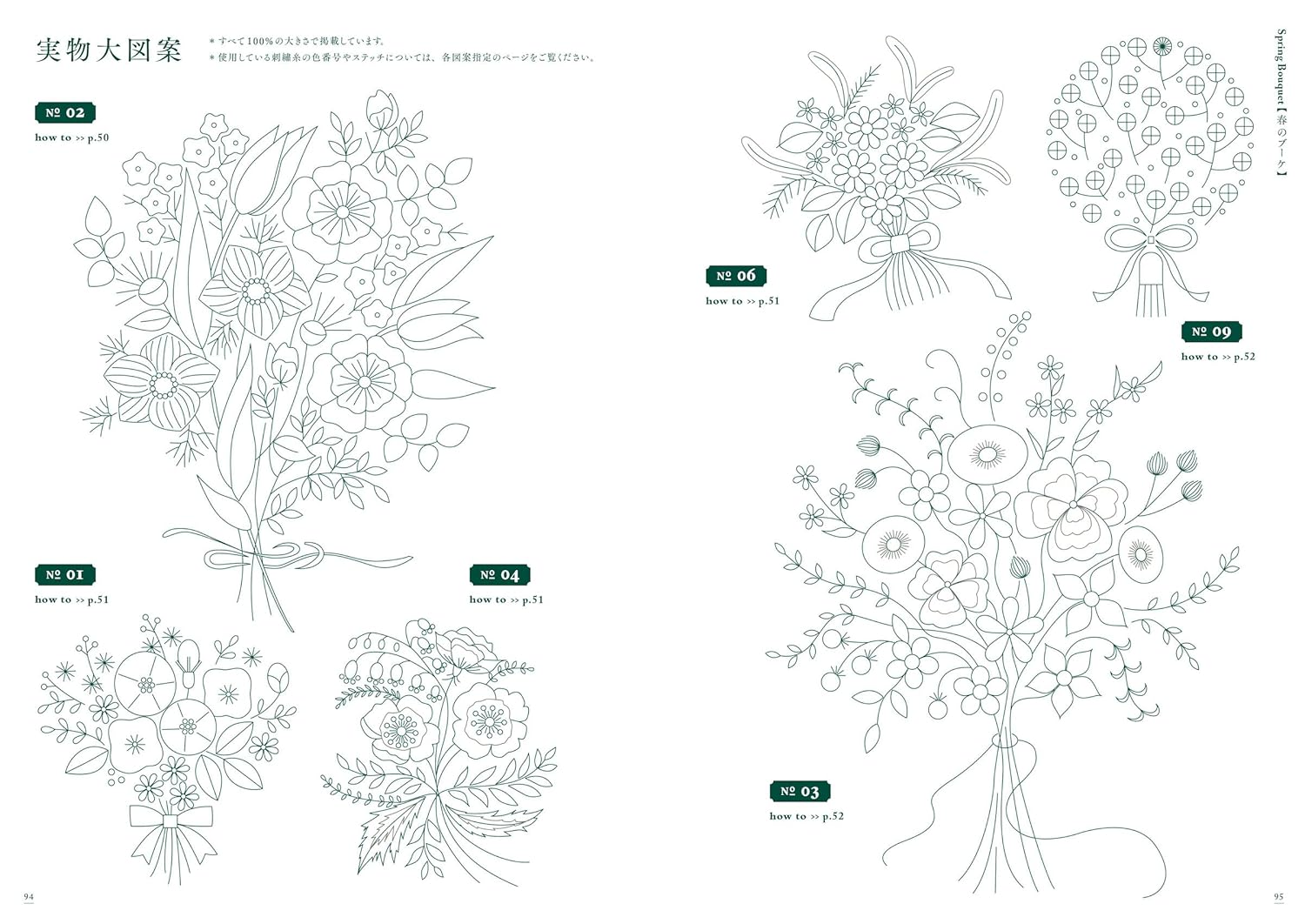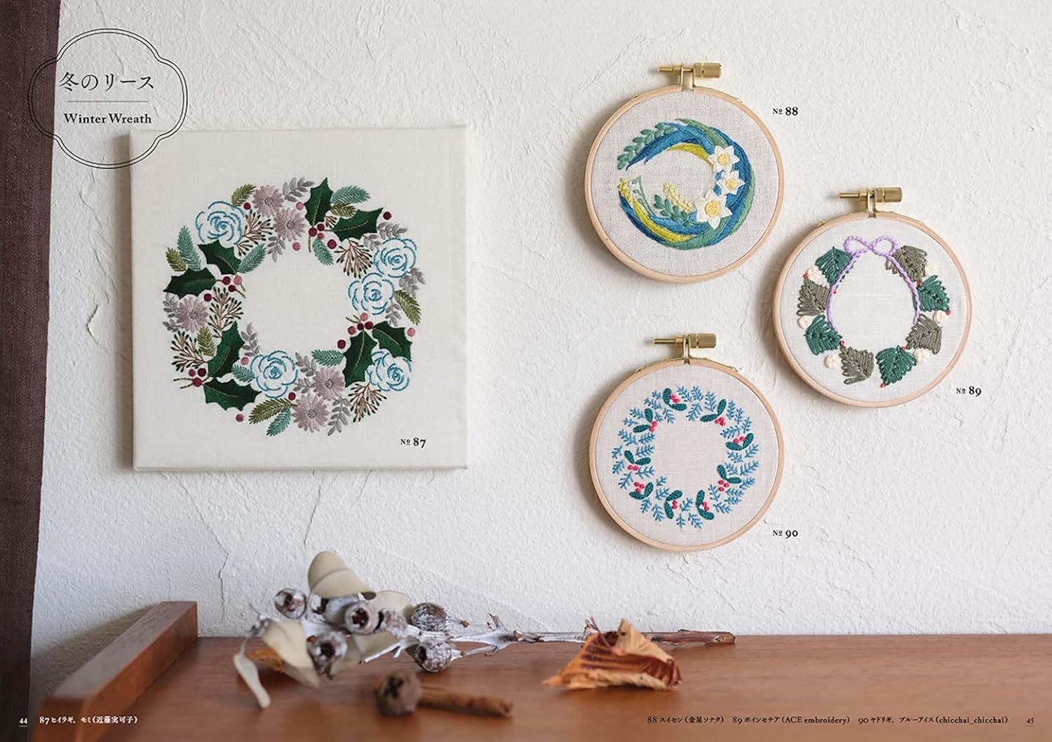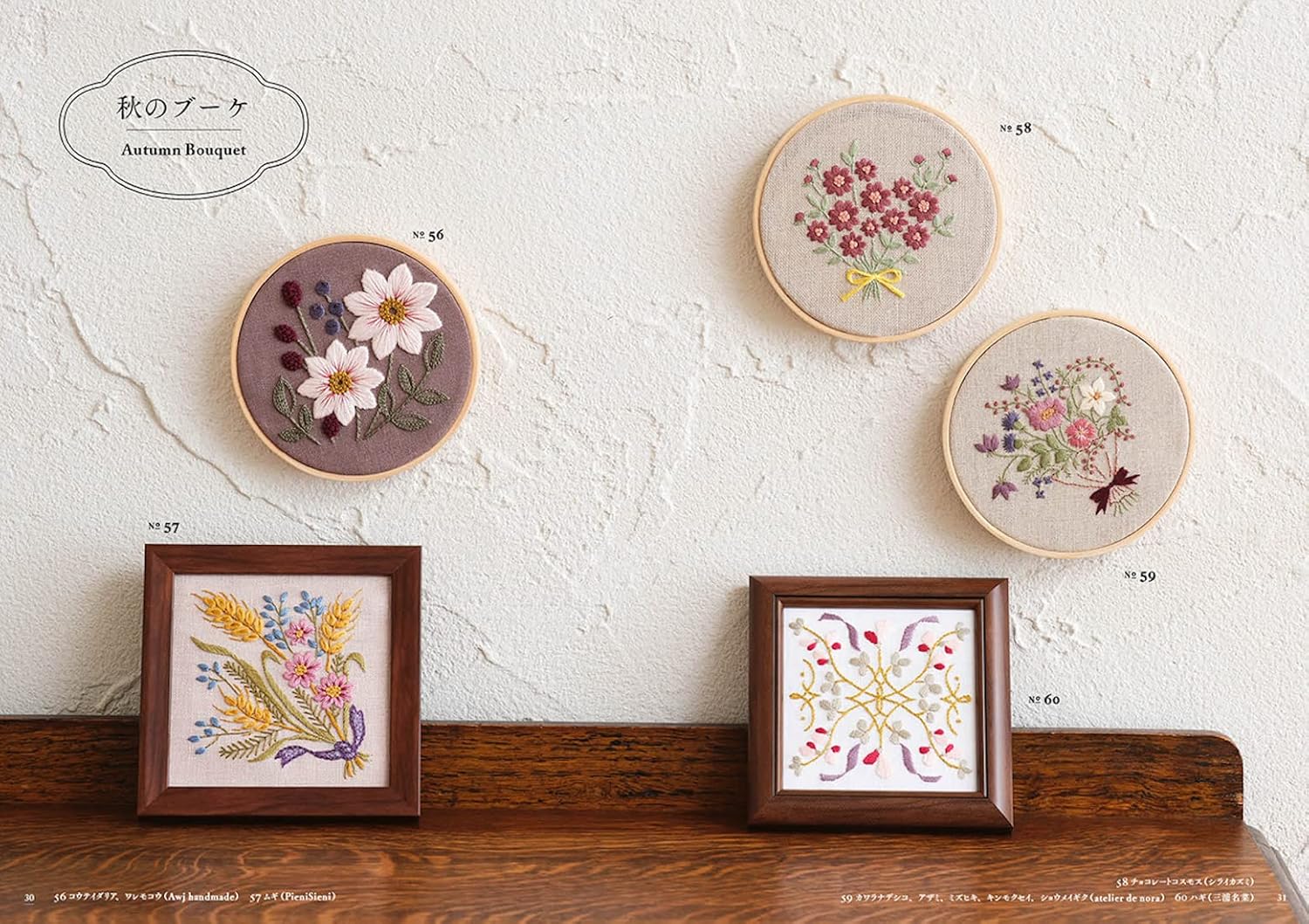 Flowers are beautiful and charming on their own, but when arranged into wreaths or bouquets, they become even more elegant and delightful. The same is true when depicting them in embroidery. This book showcases seasonal wreaths and bouquets—spring, summer, autumn, and winter—through samplers created by various embroidery artists.