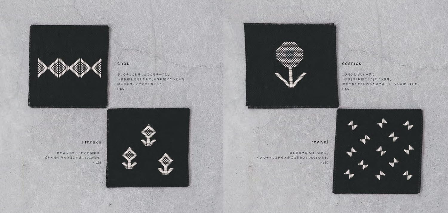Original embroidery that combines the traditional kogin stitch and counted stitch techniques of Aomori (Northern Park of Japan).
