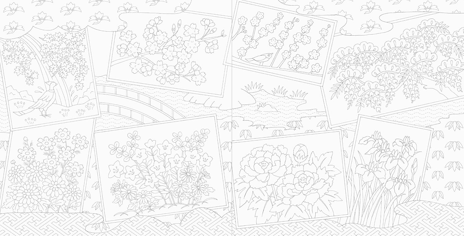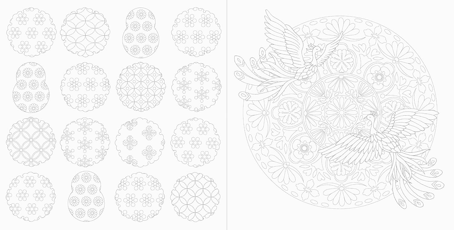 Enjoy coloring auspicious Japanese patterns and seasonal floral designs in this beautifully illustrated Japanese coloring book.