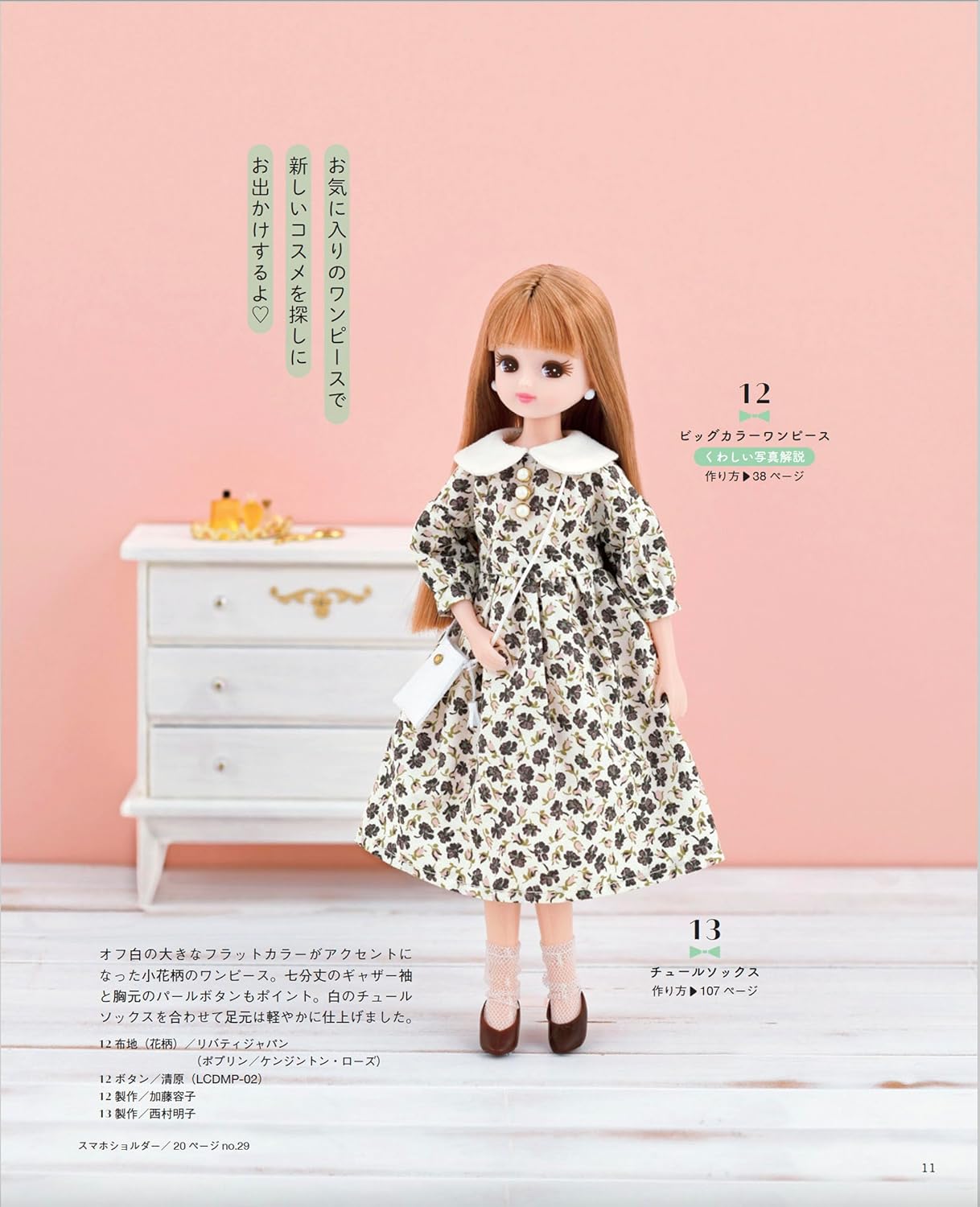 The book introduces a wide variety of designs, from basic real clothes such as dresses, cut-and-sewns, pants, skirts, hoodies, and coats, to wedding dresses, etc. It also includes bags, hats, and other fashionable accessories that coordinate perfectly with Licca's outfits.