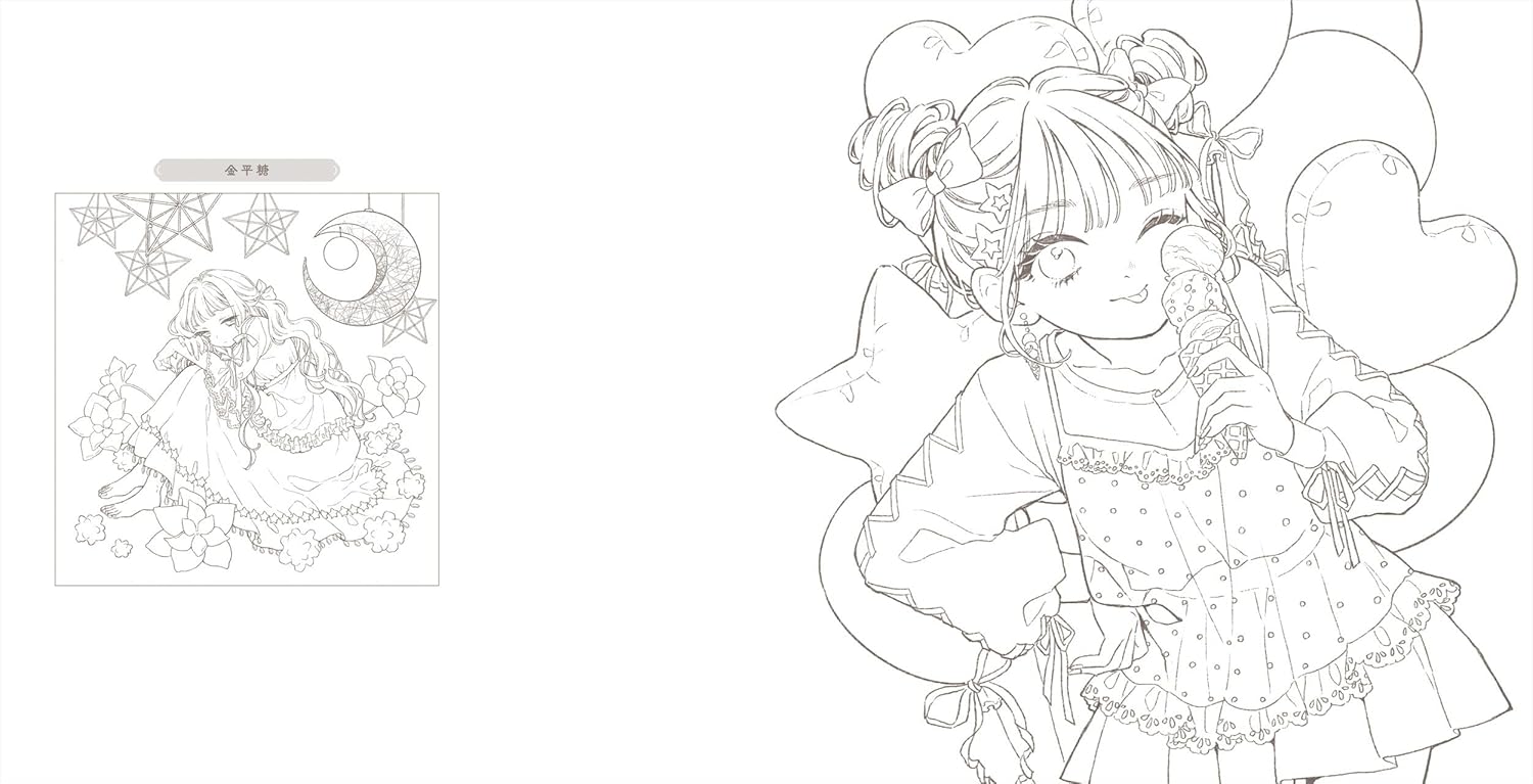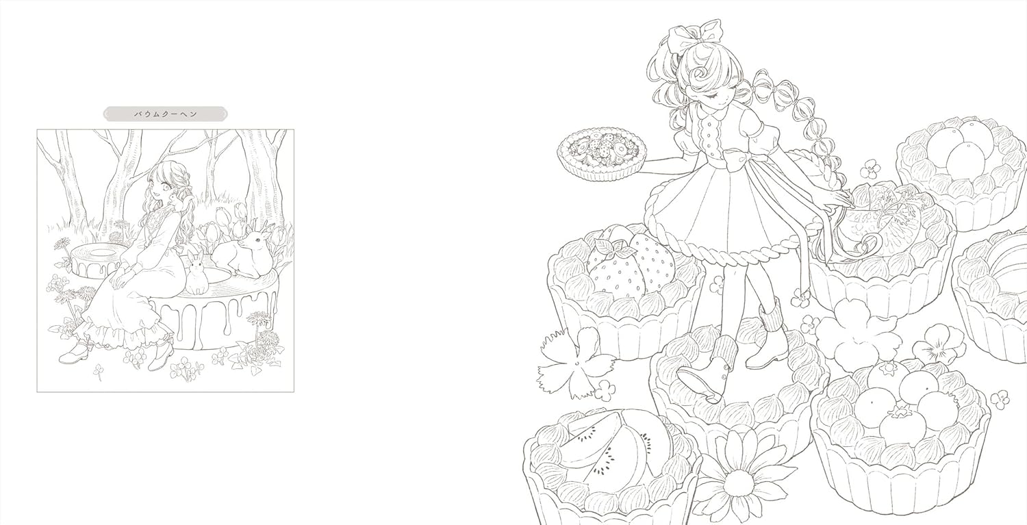 This book includes 40 coloring illustrations inspired by girls and sweets, each filled with charm and gentle fantasy.