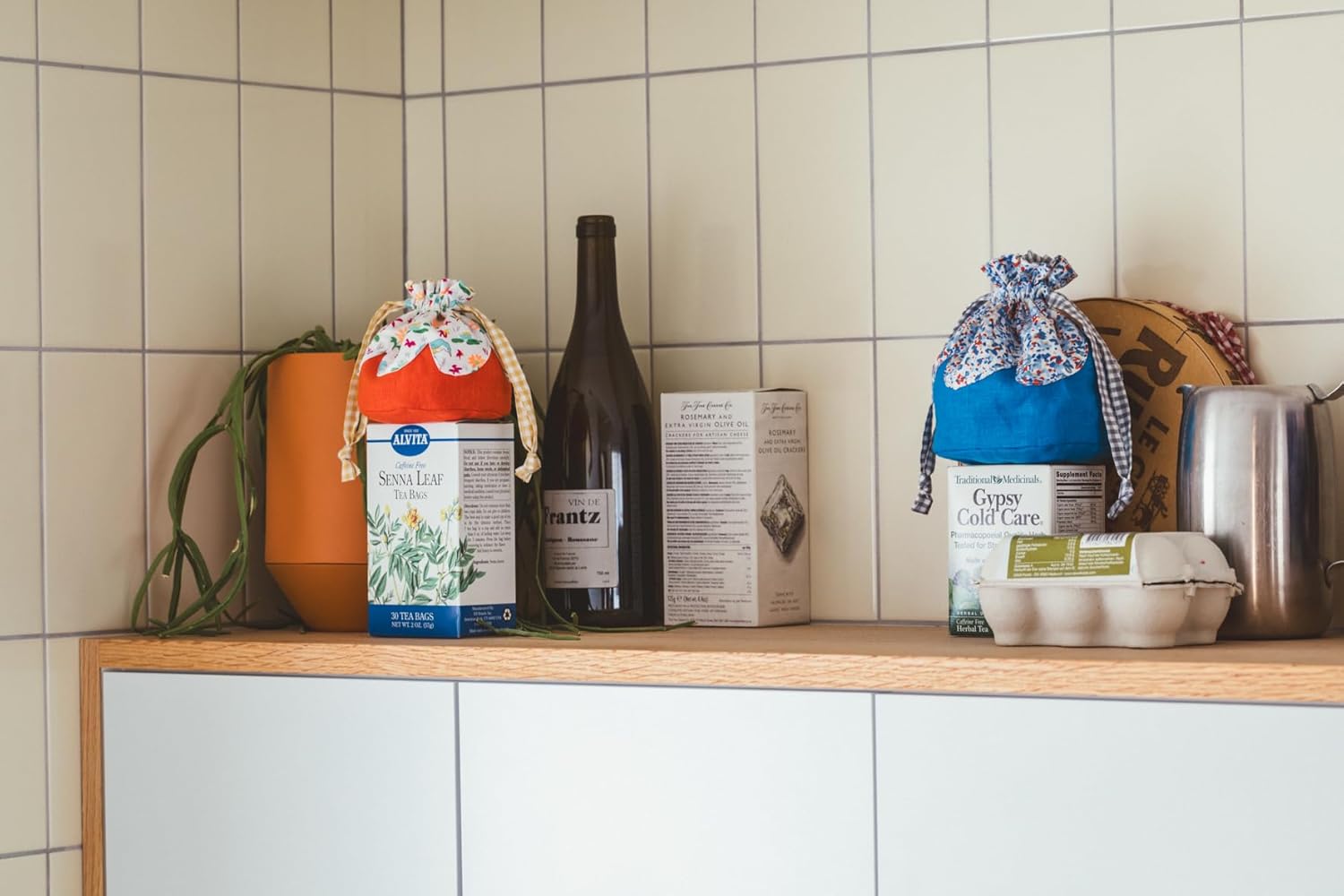 + Round-bottom drawstring pouch