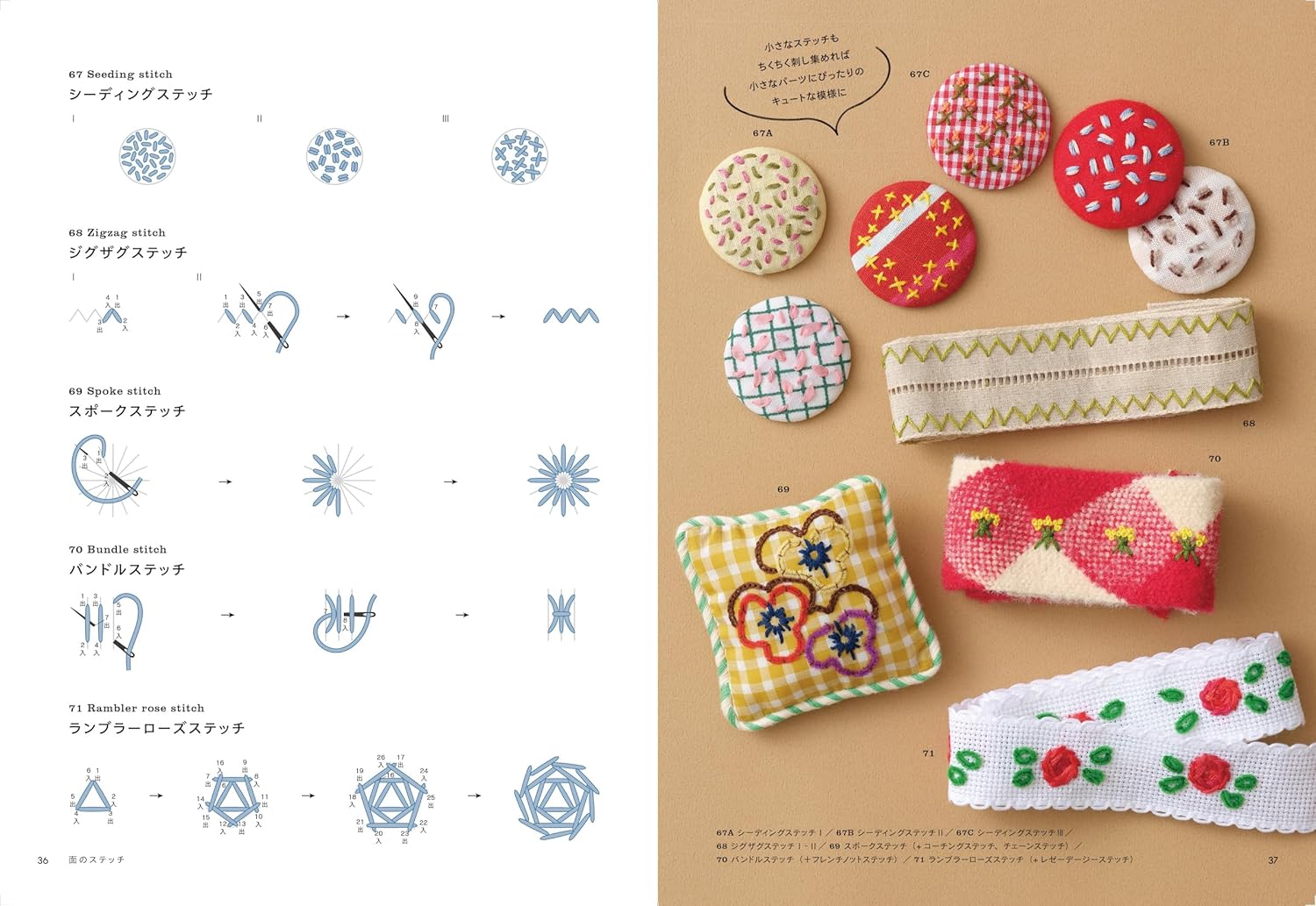 Each stitch is clearly explained with step-by-step diagrams and sampler examples showing how it can be used in real projects.