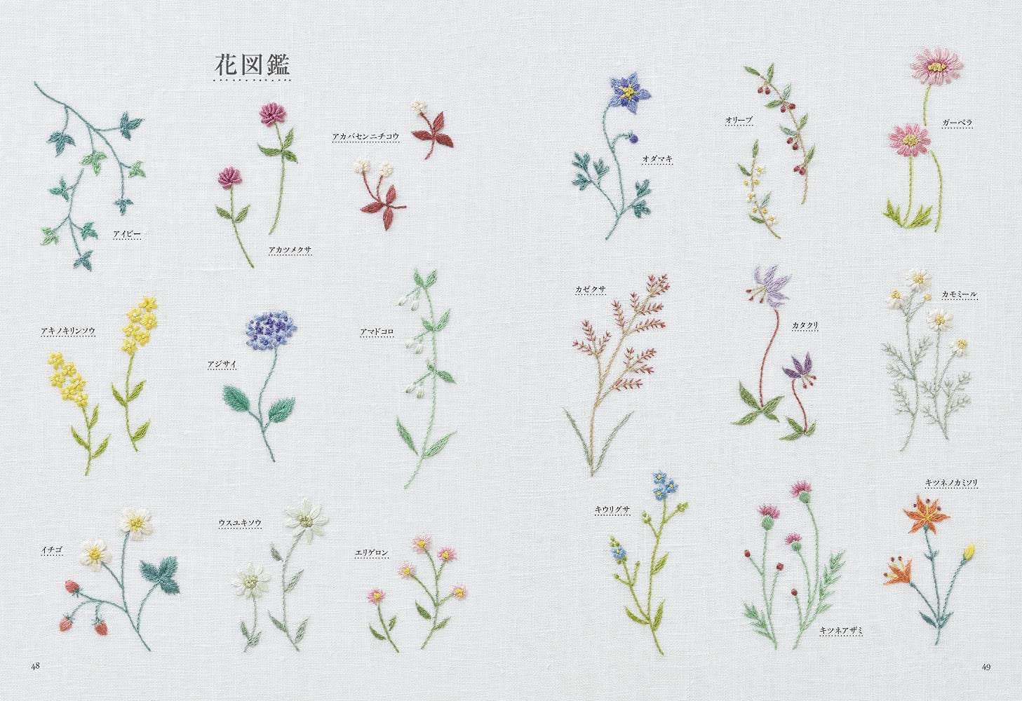 The book introduces 54 designs of beautiful botanical embroidery.