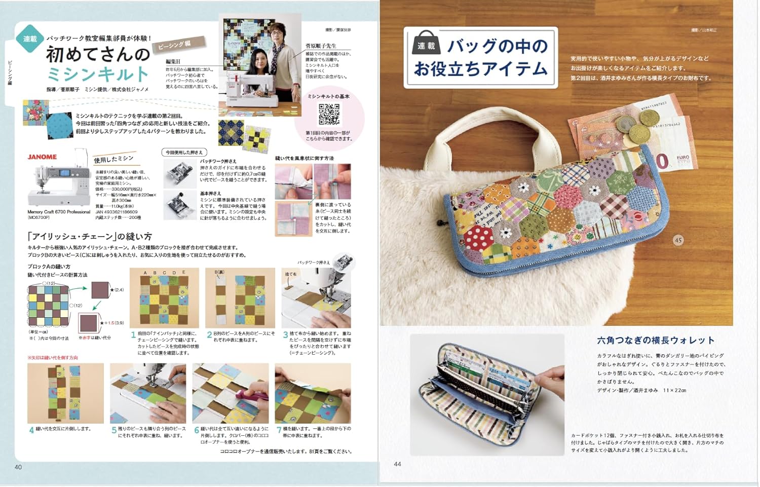 You’ll also find inspiring projects such as New Year and zodiac quilts made with beautiful Japanese fabrics, plus lovely spring bags perfect for the upcoming season.