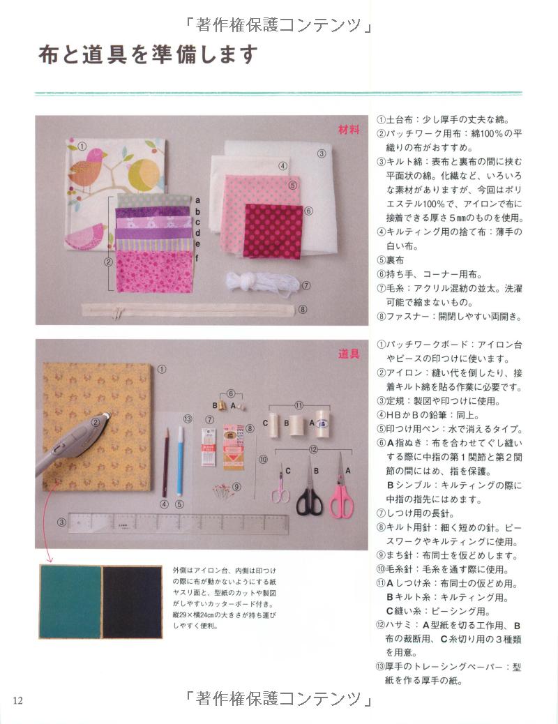 The book introduces 18 cute patchwork bags and pouches with full-scaled pattern paper.