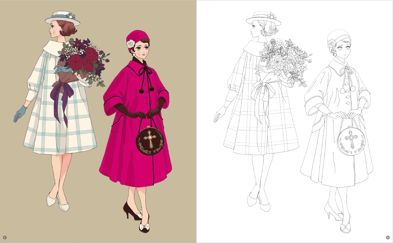 Retro Fashion Coloring Book by Mari Katogi - Japanese Coloring Book