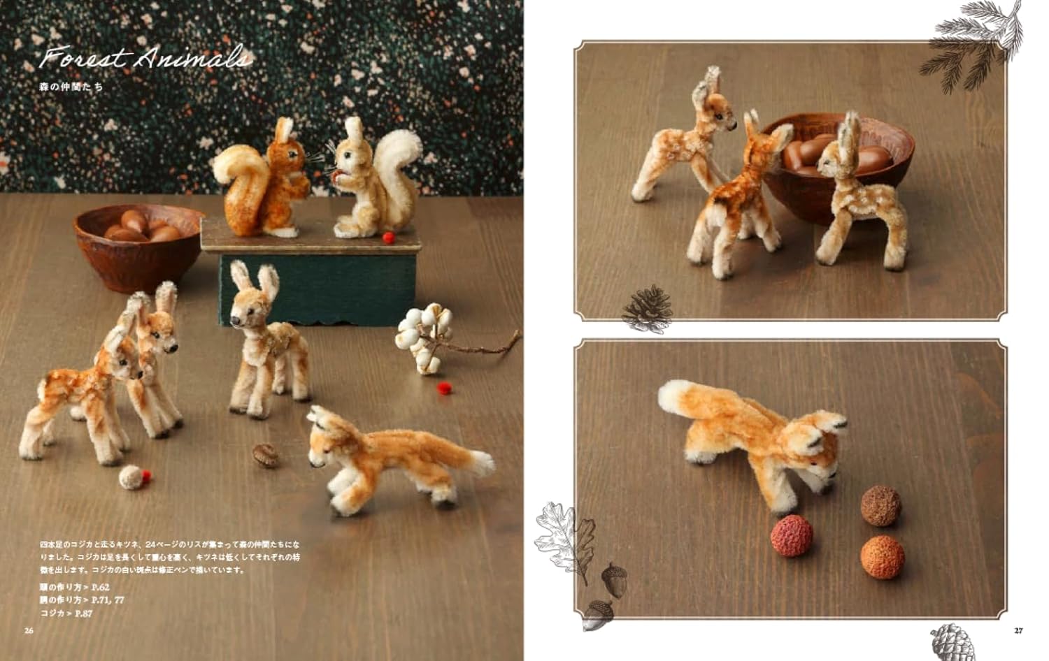 This Japanese craft book features 21 types / 72 tiny pipe cleaner animals (chenille stem animals).