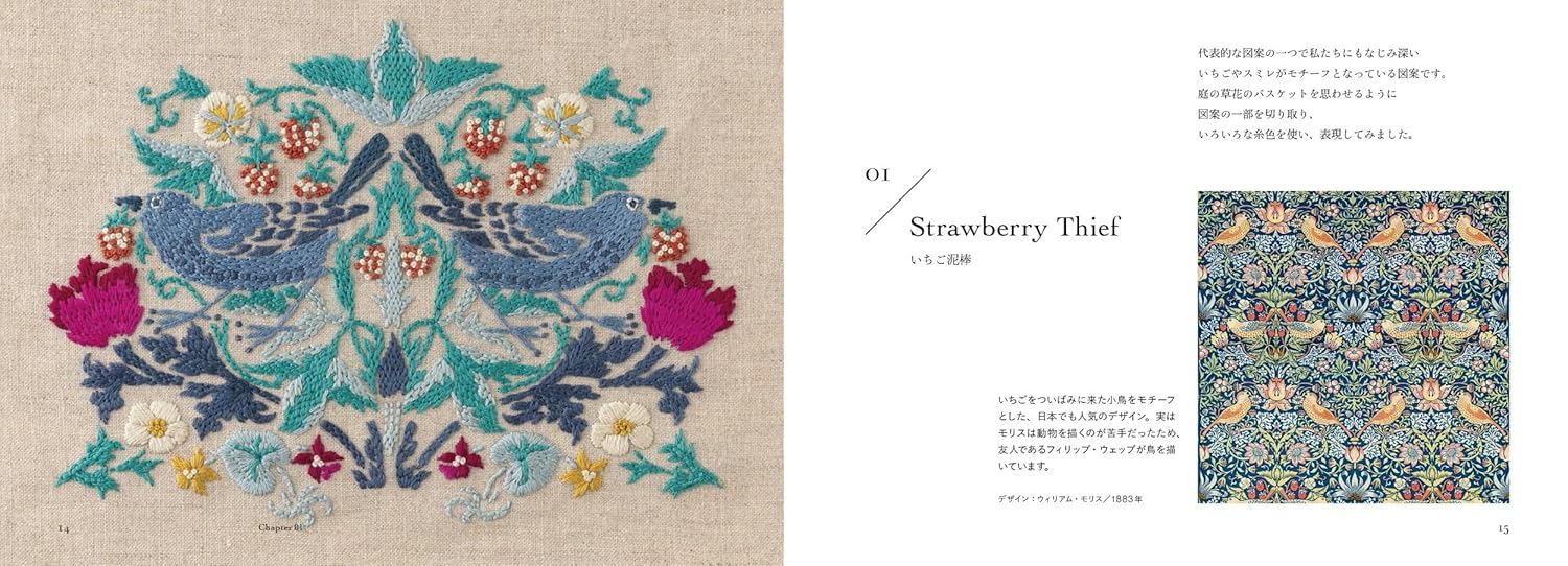 For the first time in Japan, this book presents a collection of embroidery patterns based on 20 beloved William Morris designs—including well-known works such as “Strawberry Thief” and “Brother Rabbit,” which have been cherished by people around the world for many years.